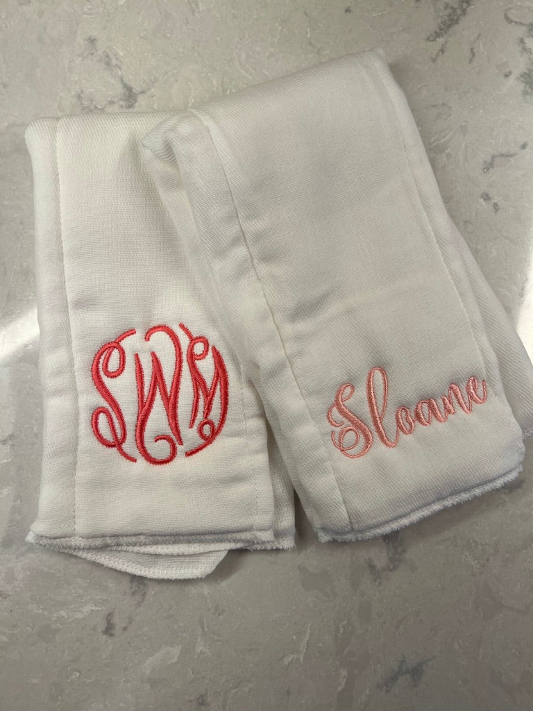 The classic white burp cloth is a great blank canvas for designs made of sugar and spice and everything nice! More of a snakes and snails and puppy dog tales type? No problem, these thick cotton burp clothes can do it all!