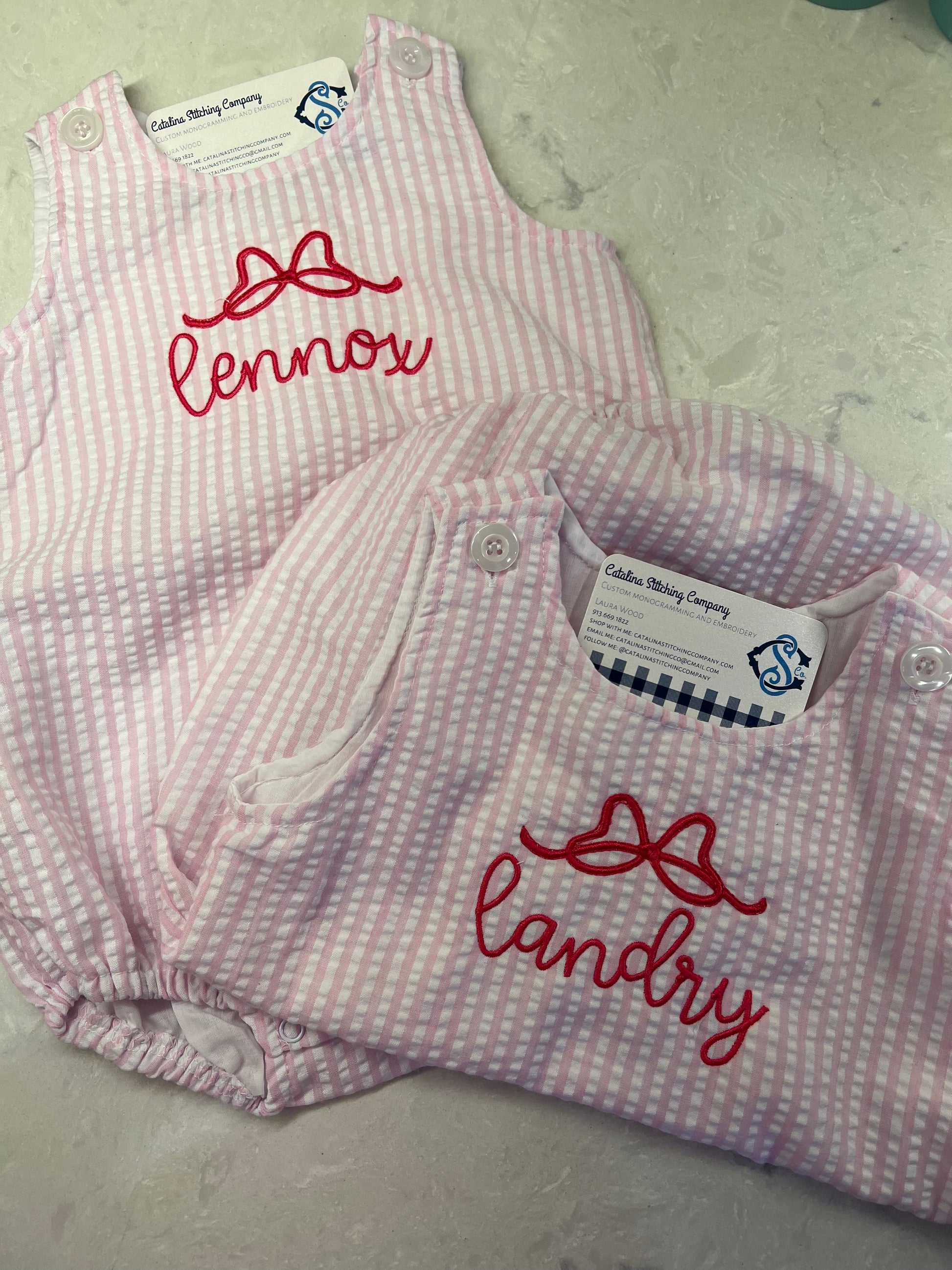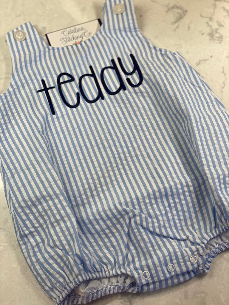 The seersucker bubble is a classic for a reason! They'll be opinionated preschoolers soon enough, so enjoy the bubble phases while you can! We love how much wear they can get during the year, and can be monogrammed by season or for everyday play.