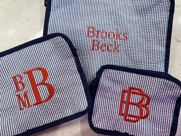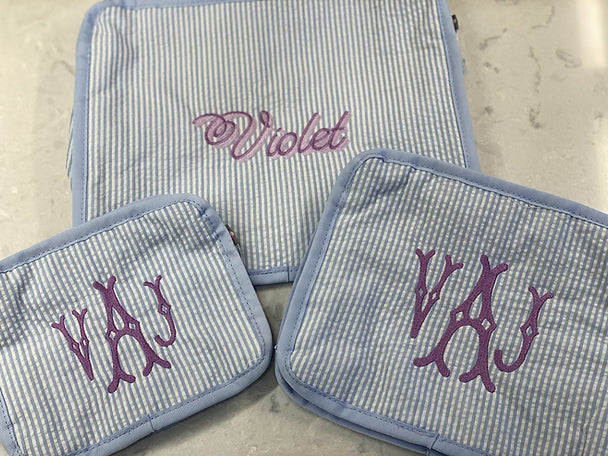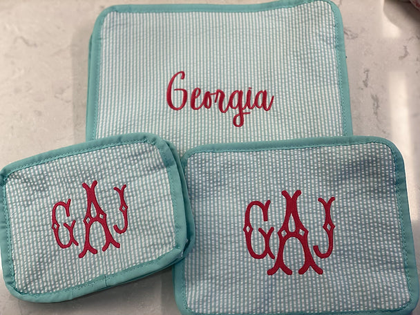 The Mint stacking sets are light and bright and have all of your needs covered. The small is perfect for all of the charging cords your life needs . The medium is a diaper bag necessity - a travel white noise machine, a few spare binkys, a small bottle, and you're set. The large can hold it all, plus an iPad!.. no, really, it's big enough for an iPad plus all the other gear you need to go!