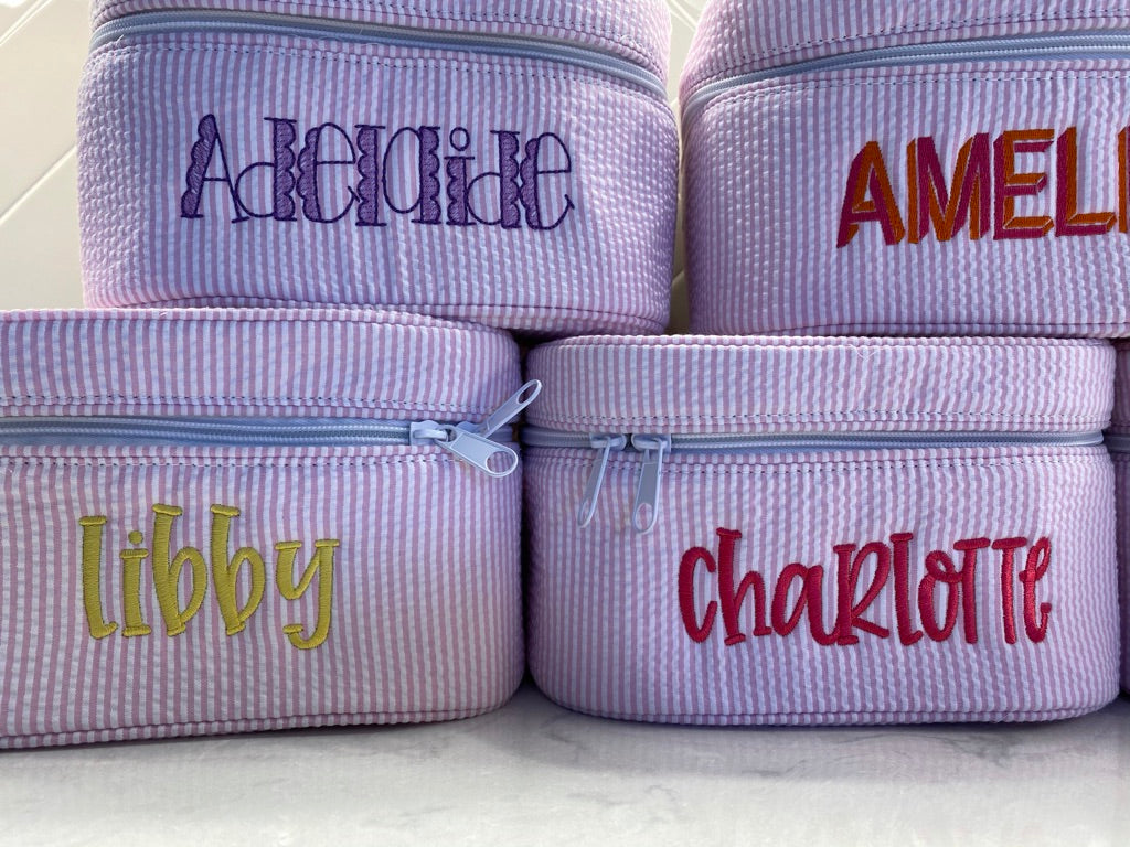 "Can I paint my nails?" Fun words from a little one... And as we know, once it starts, they're hooked! The train case is lined for easy wiping, and can hold all of the accessories little miss needs for salon-quality manicures. Also great for cars, dinosaurs, crayons and paper - and voila! The perfect on-the-go activity kit for restaurants, car trips, or whenever treasures are needed.